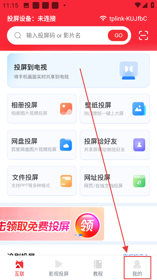 1、首先打开乐播投屏app,选择界面下方的“我的”选项,点击打开。