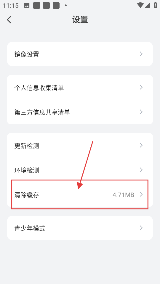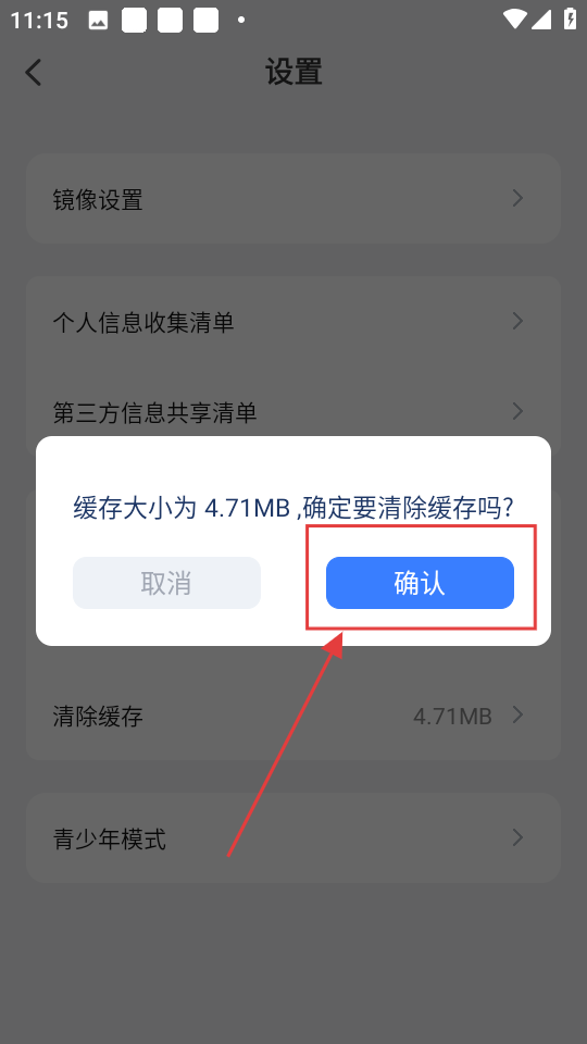 3、在设置界面点击【清除缓存】,就能触发清除缓存的确认弹窗哦。