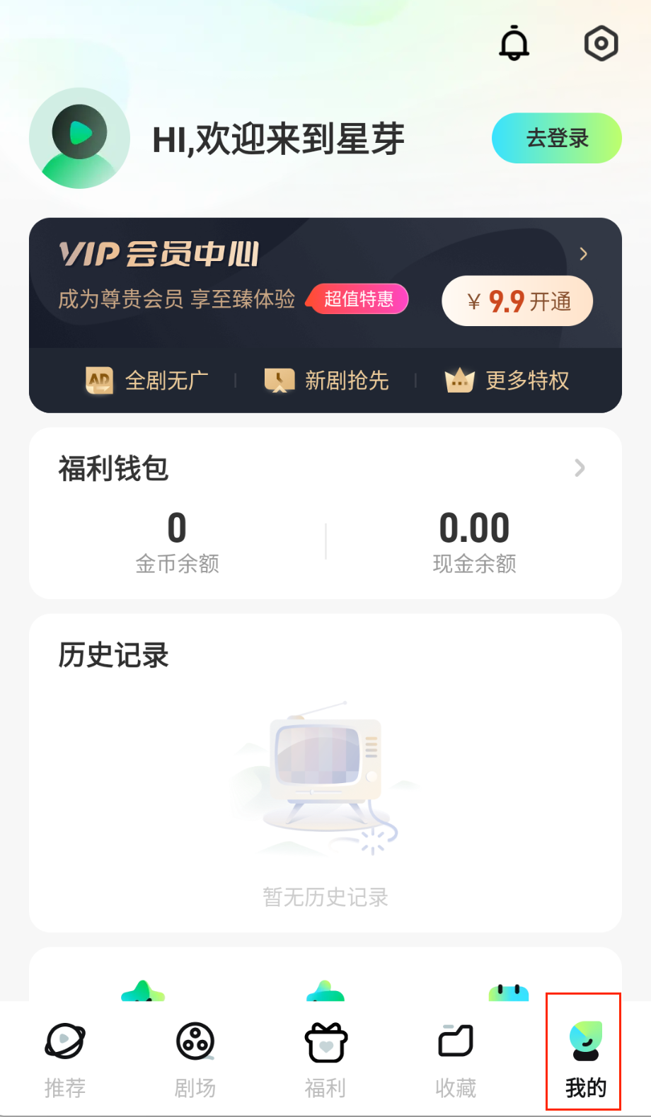 2、完成手机号登录后,点击底部导航栏中“历史”按钮,进入观看历史页面,此处汇集所有已浏览过的短剧内容。