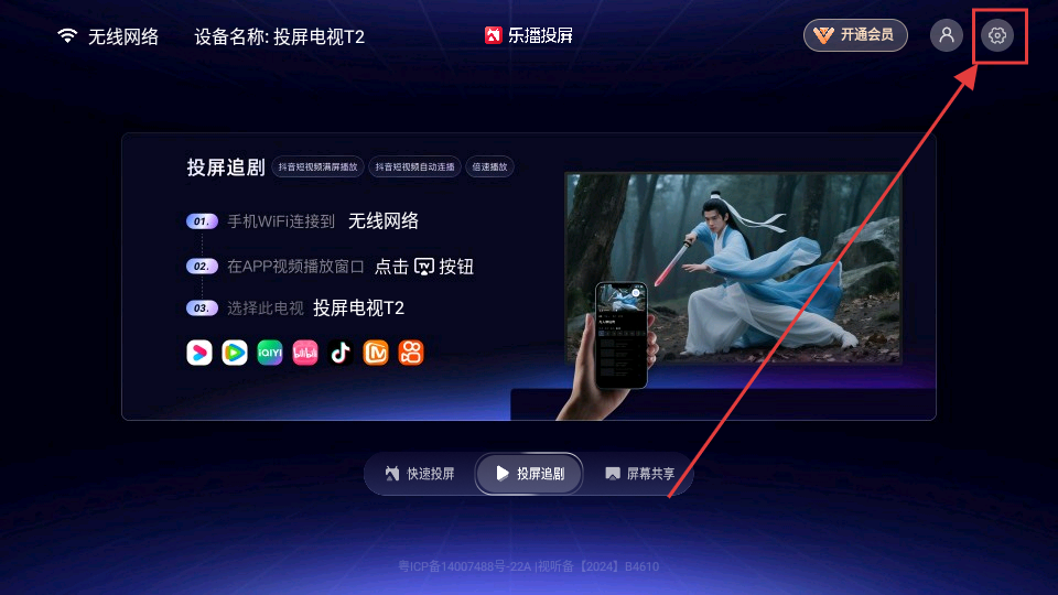 1、在乐播投屏主界面点击右上角【设置】图标,进入设置中心可进行各类设置操作哦。
