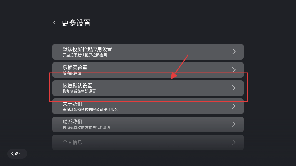 3、在更多设置页面找到【恢复默认设置】选项并点击,可将设置恢复到初始状态哦。