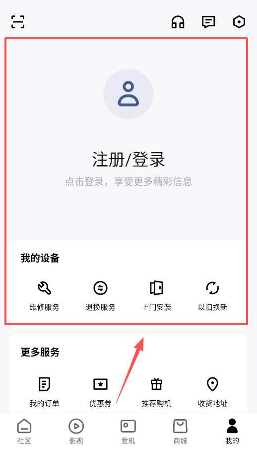 1、管理个人账户:从“我的”入口进入,完成登录后,你的设备信息、售后服务以及优惠券、收货地址等都可以在这里集中查看和管理。
