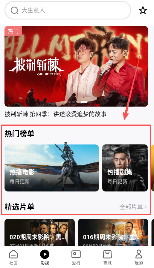 3、影视内容观看:进入“影视”页面,你能直接看到热门榜单和精选片单,比如热播电影和综艺,内容每日更新,方便你快速找到想看的节目。