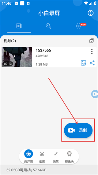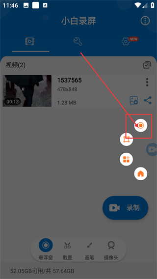 2、点击录制后,界面会弹出控制浮窗,点击浮窗中的录制按钮,就能正式开始屏幕录制的流程哦。