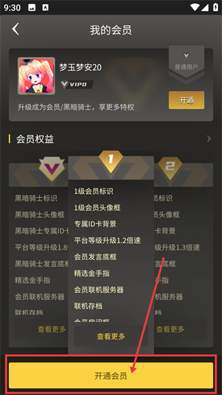 3、在【我的会员】页点底部的【开通会员】按钮,可解锁1级会员标识等专属权益,提升体验啦。