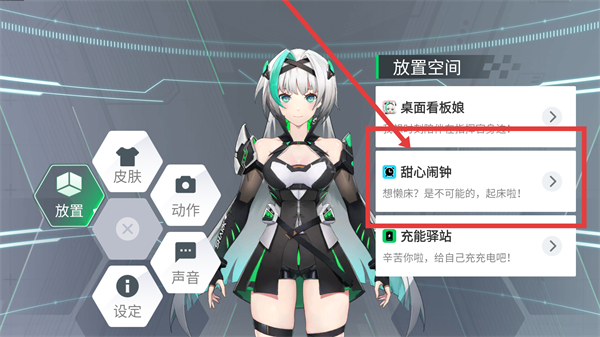 2、进入放置页面后找到【甜心闹钟】选项并点击,就能进入闹钟功能的配置界面,设置专属的起床提醒哦。