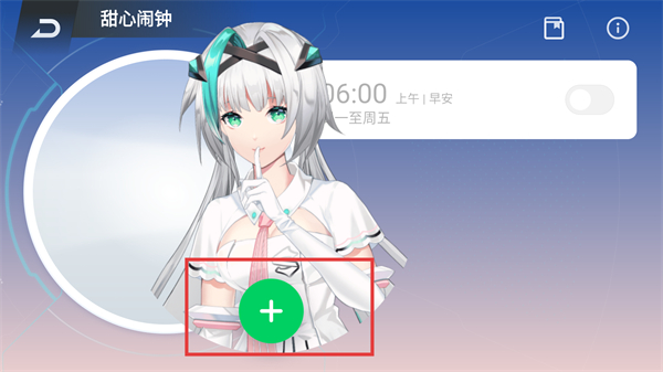 3、在甜心闹钟页面点击绿色的【+】按钮,就能打开闹钟编辑界面,开始设置闹钟的时间与参数啦。