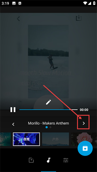 1、在视频编辑页面点击底部的音乐图标,就能打开音乐配置界面,为视频添加合适的背景音啦。