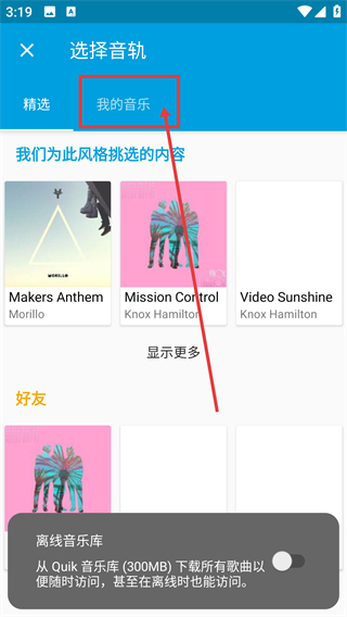 3、点击【音乐库】按钮就能进入音乐选择页面,可从这里挑选不同风格的音乐来搭配视频内容啦。
