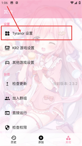 2、进入其他页后点【Tyranor设置】选项,能进入对应的设置界面,可调整相关配置哦。