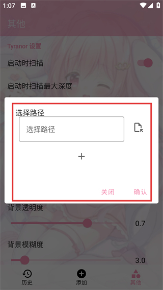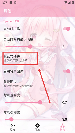 3、在Tyranor设置页点【默认文件夹】选项,能打开路径选择弹窗,后续可自定义文件路径啦。