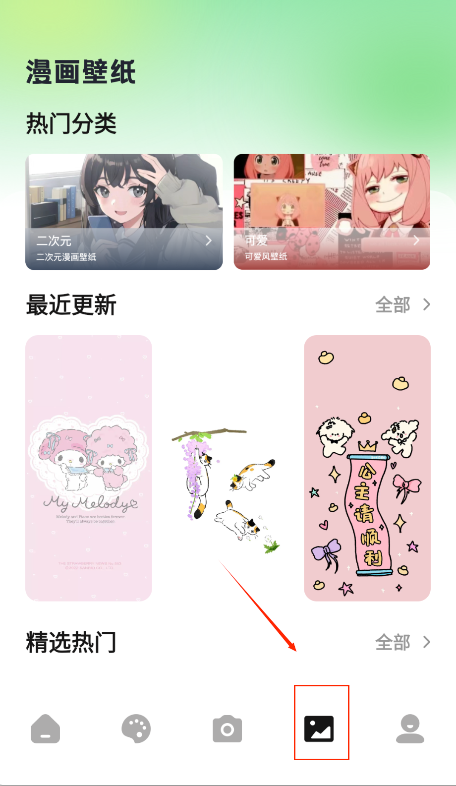 1、打开软件后首先看到底部清晰的导航栏,包含首页、分类、创作等五个图标,点击首页可以浏览推荐的热门漫画和壁纸。