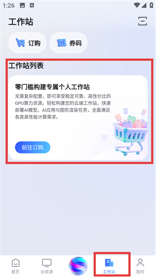 4、在【工作站】页面点【前往订购】,就能零门槛构建专属工作站,满足高性能计算需求哦。