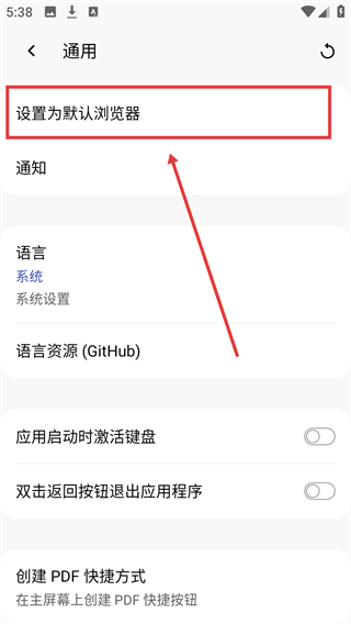 4、在通用设置界面,找到【设置为默认浏览器】选项,点击即可将该浏览器设为系统默认啦。