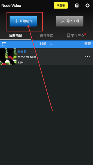 1、在NodeVideo主页面点击【+开始创作】按钮,就能进入视频编辑的项目界面,开启新的创作啦。