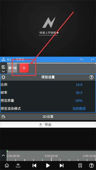 2、进入项目界面后,点击根节点旁的加号按钮,就能打开新建图层的菜单,选择要添加的内容类型哦。