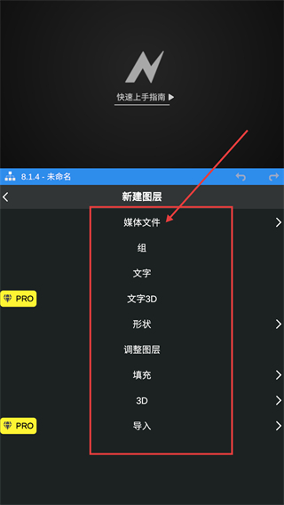 3、在新建图层菜单里选择【媒体文件】选项,就能导入视频或图片素材,添加到当前项目中呀。