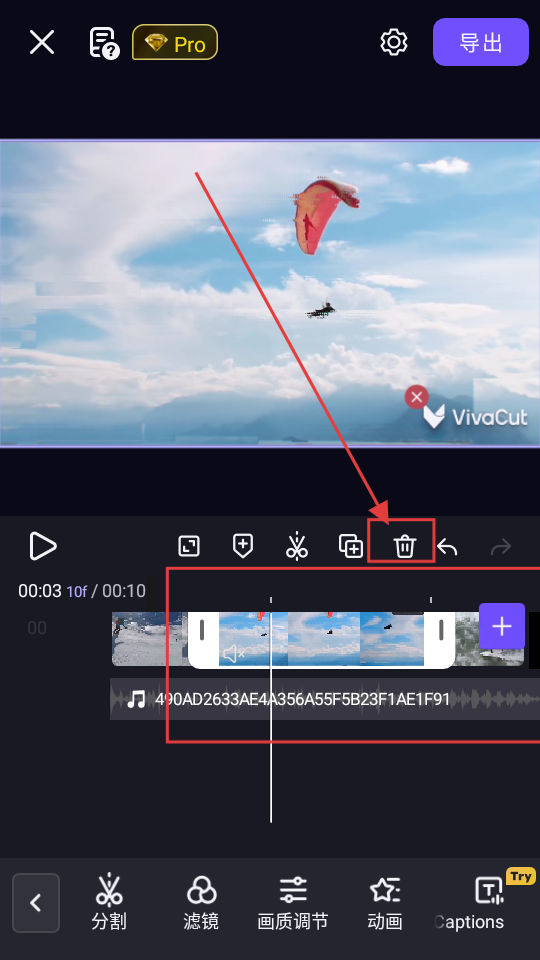 3、选中不需要的视频片段,点击上方【删除】按钮,就能去掉多余部分,完成截取操作哦。
