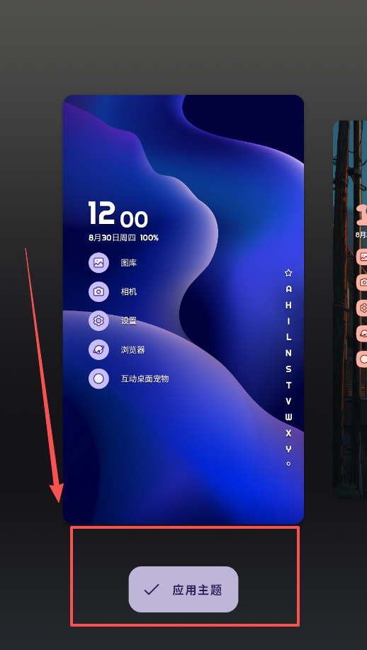 2、接着,点击主屏上的“应用主题”或探索启动器主题来换肤。想深入美化,安装后就能下载更多图标和主题了。