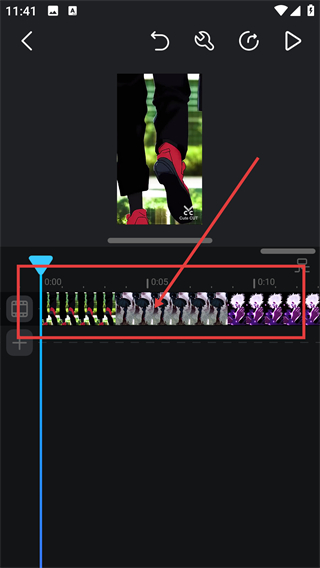 1、在视频编辑轨道里选中要调整的素材段,后续就能对这段素材进行裁剪或删除等操作啦。