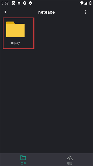 4、进入【netease】文件夹,仅显示红框标注的【mpay】文件夹,无其他额外文件或文件夹。