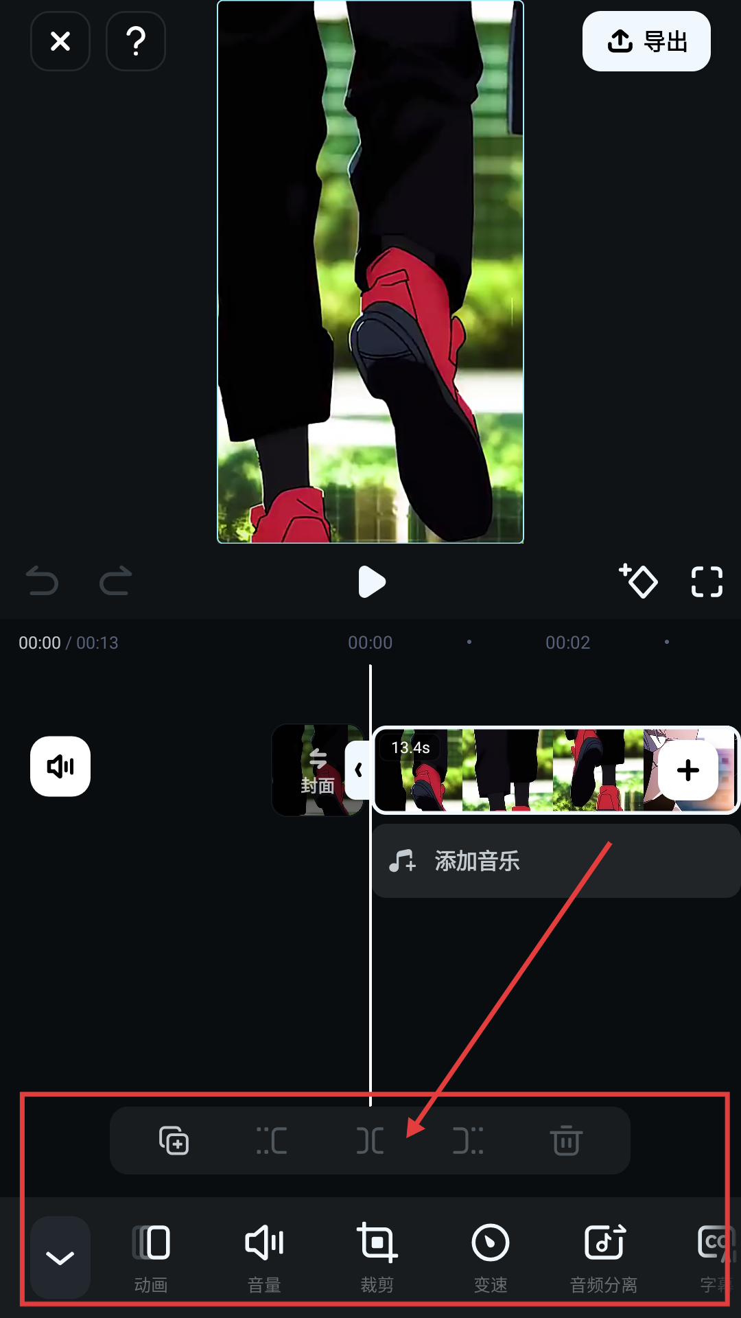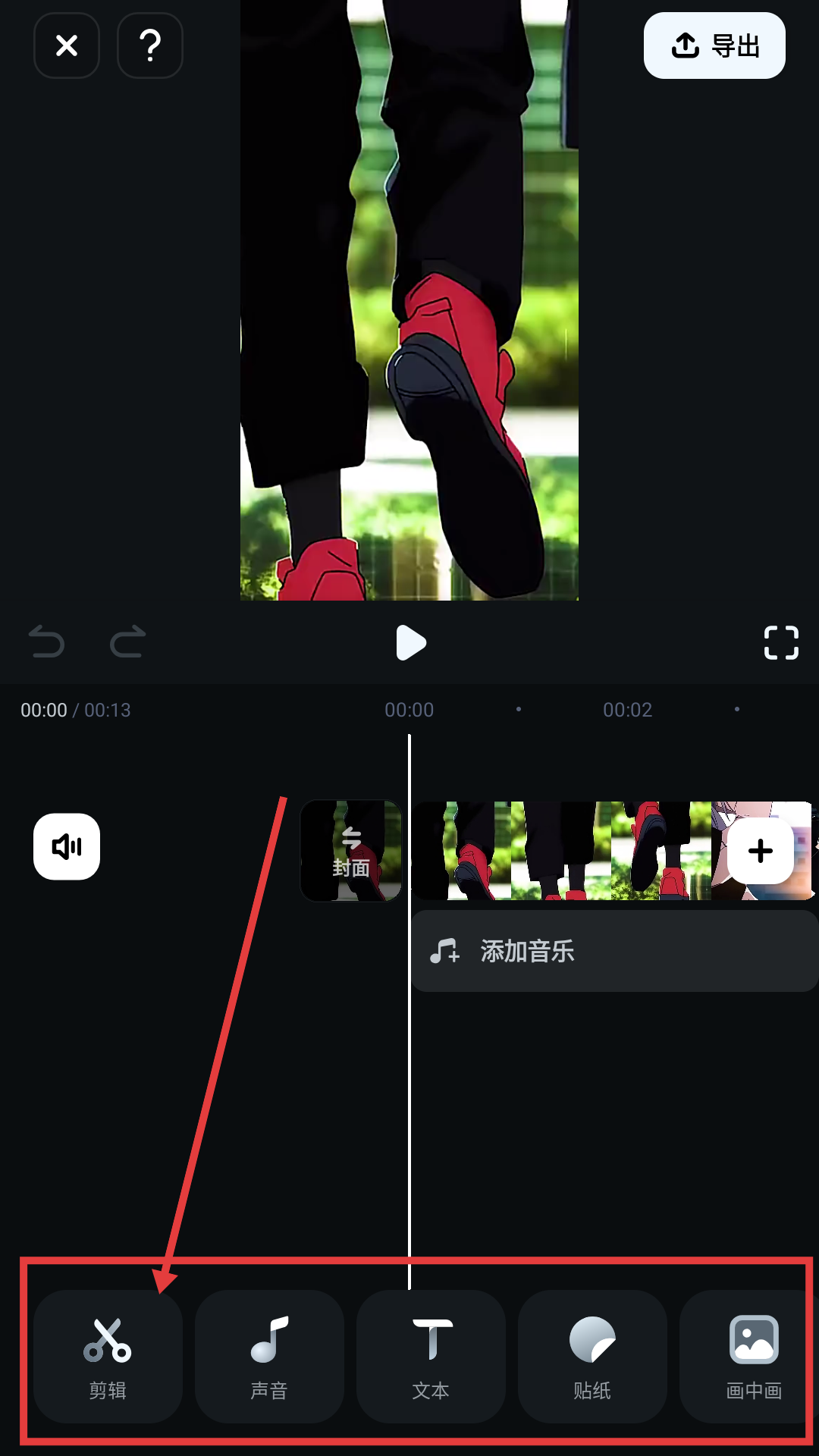 2、导入视频素材后,在编辑页面点击底部功能栏,可选择剪辑、声音等工具,开始调整视频内容哦。