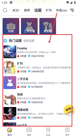 2、进入话题页面后能看到【热门话题】列表,选择感兴趣的话题点击进入,就能查看该话题下的内容哦。