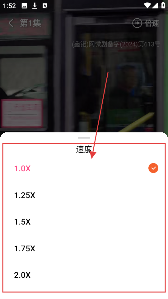 3、点击倍速后,会弹出速度选择列表,可选择1.25X、1.5X等不同倍速播放短剧哦。