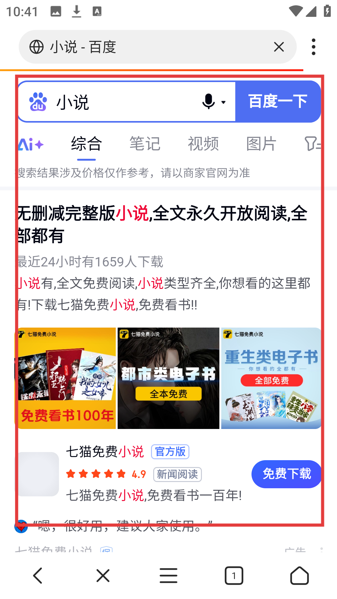 1、在浏览器首页点击搜索框,进入搜索页面可查找小说哦。