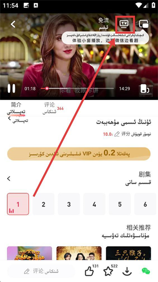 3、在播放界面点击顶部的【TV】图标,就能打开投屏功能选项,准备将内容投射到电视啦。