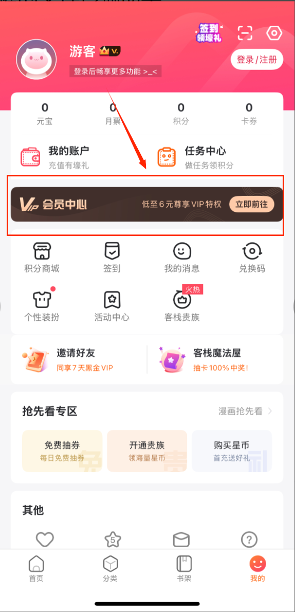 4、会员特权很实用,像“抢先看专区”可以提前阅读章节,每天还有“免费抽券”机会,多关注“活动中心”的福利任务能获得额外奖励哦。