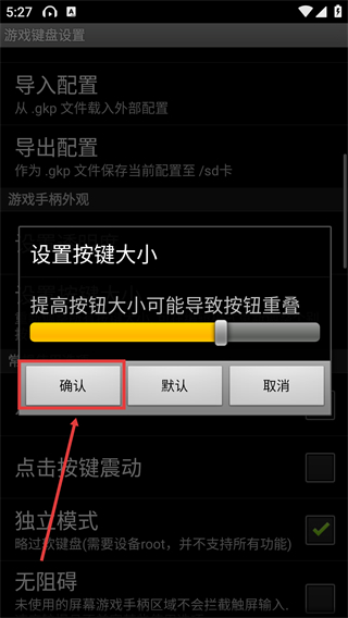 4、调整完按键大小后,点击红框标注的【确认】按钮使设置生效。