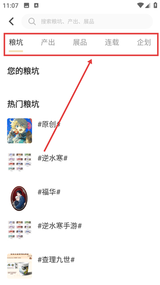 1、在【粮坑】页面滑动顶部的分类栏,能看到更多分类选项,找到自己感兴趣的内容板块啦。