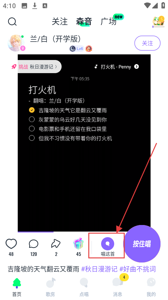 1、在唱歌软件里,看到想唱的歌曲,点击【唱这首】,就能进入歌曲演唱准备页面啦。