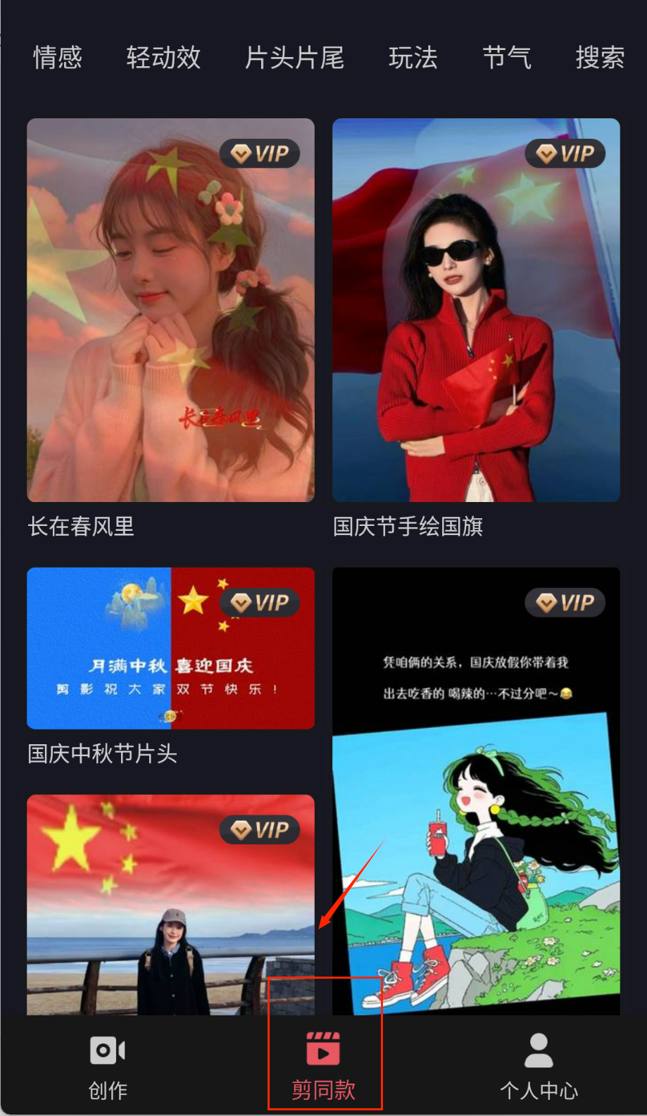 2、在热门模板里能看到像长在春风里、国庆节手绘国旗这样带VIP标识的精品模板,选择喜欢的点击就能预览效果啦。