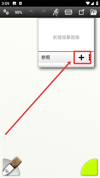 1、在绘画编辑页点击顶部的参照功能按钮,就能打开参照相关的操作面板,准备添加参照素材啦。