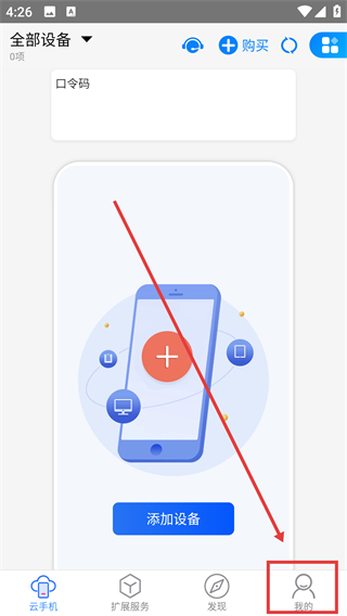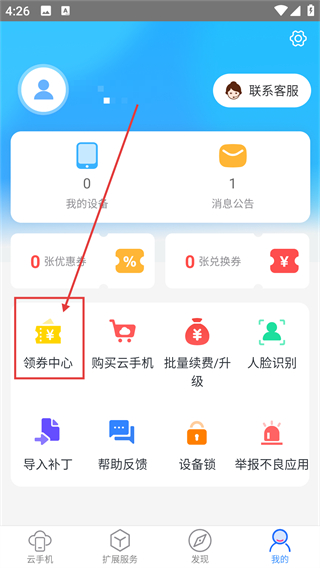 1、在云手机页面点击底部的【我的】选项,就能进入个人中心页面,查看各类功能入口啦。