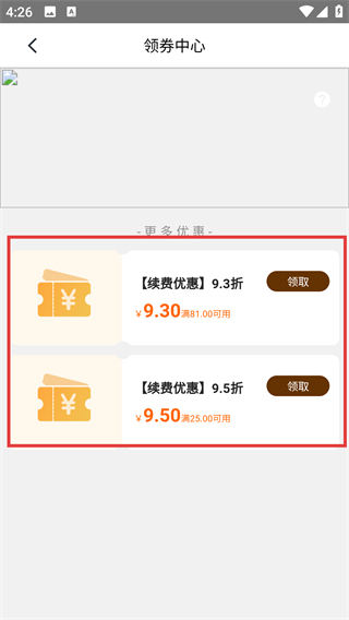 3、在领券中心页面选择想要的优惠券,点击对应的【领取】按钮,就能获得该优惠券啦。