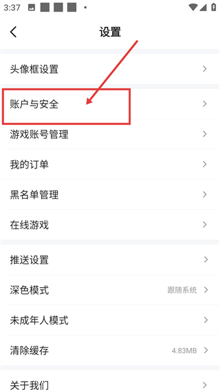 3、在设置界面,点击【账户与安全】选项,可进入账户安全页面,查看并调整账号的各类绑定信息啦。