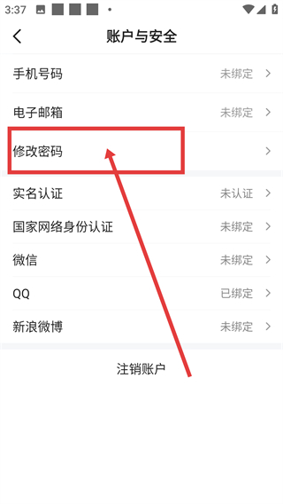 4、在账户与安全页面,点击【修改密码】选项,即可进入密码修改流程,按提示完成密码的更新操作哦。