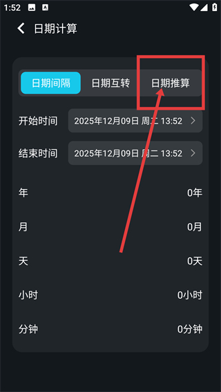 3、进入日期计算页后,点击【日期推算】标签,就能切换到日期推算的功能界面,准备设置参数啦。