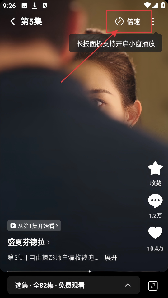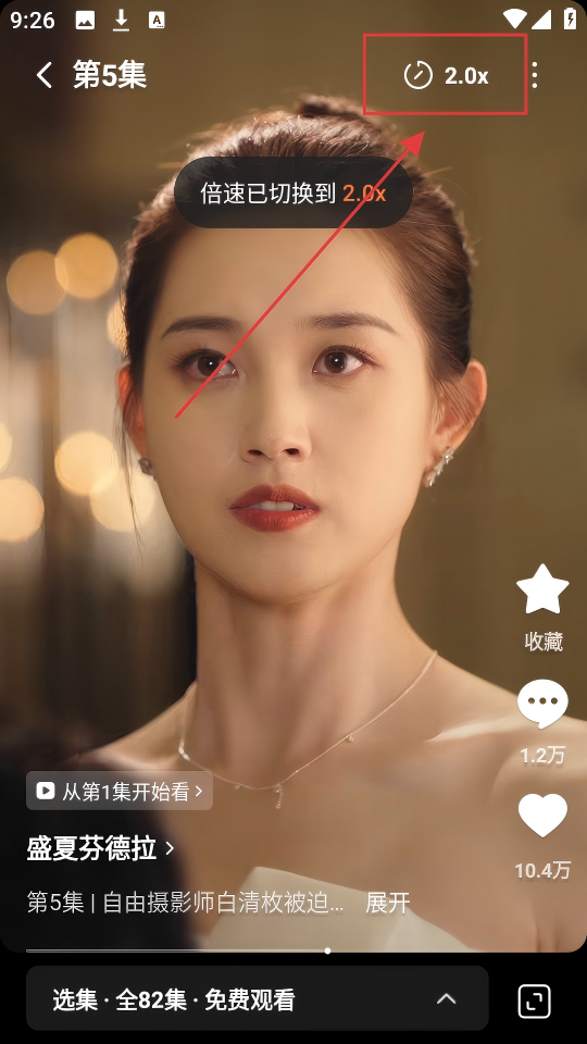 2、在剧集播放页面,点击右上角【倍速】,能打开倍速选择菜单,调整播放速度超方便。