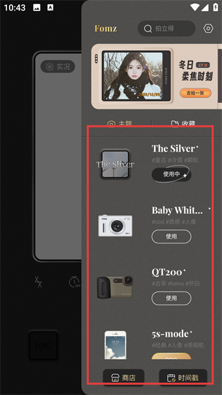 《Fomz正版》提供正版授权版本,拥有各种不同的滤镜,还会新增各种拍摄模式,让用户可以拍出自己想要的照片。为用户提供了多种复古滤镜,让用户能够以自己喜爱的风格拍摄照片,为照片赋予复古和有年代感,记录下最精彩的瞬间和记忆。为用户提供了丰富的滤镜效果和经典胶片滤镜,让用户可以轻松拍摄出令人惊叹的复古风格照片。该应用还具有独特的功能,无论您是摄影爱好者还是普通用户,都将成为您拍摄和记录精彩瞬间的得力助手。