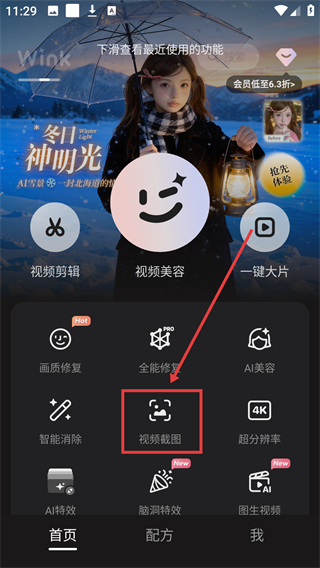 1、在APP首页,点击【视频截图】功能选项,进入视频选择界面,可挑选需要截图的视频素材啦。