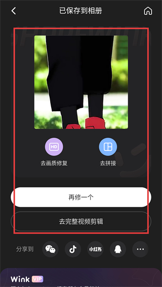 4、截图成功保存到相册后,还能选择【去画质修复】等功能优化截图,或直接分享到社交平台呀。