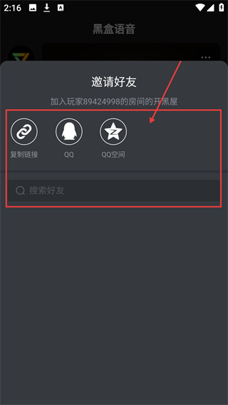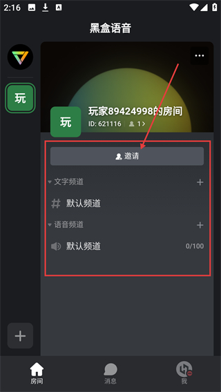 3、进入已创建的房间后,点击上方的【邀请】按钮,可打开邀请渠道选项,方便邀请好友加入呀。