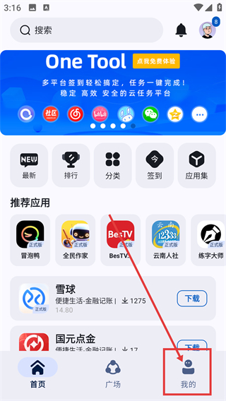 1、在应用首页点击底部的【我的】选项,就能进入个人中心页面,找到各类功能入口啦。
