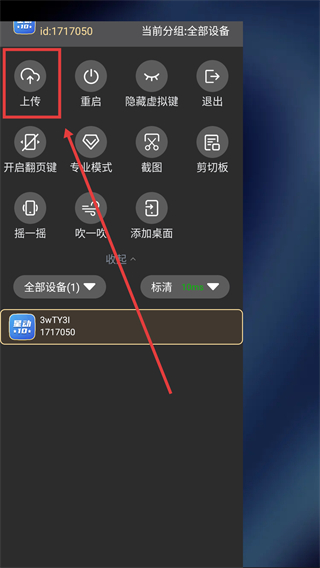 2、展开功能菜单后点击【上传】按钮,就能进入文件中心页面,准备上传内容到云设备哦。