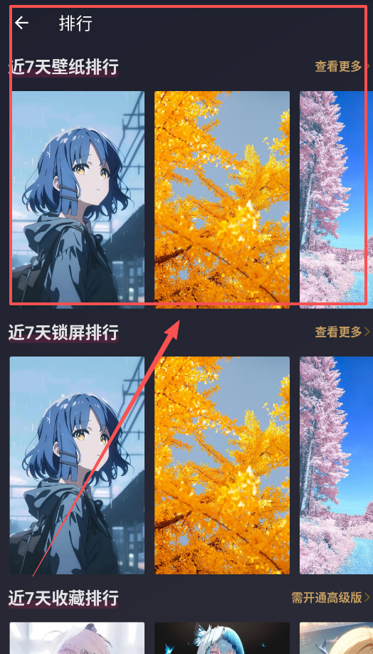 2、这里展示了最近七天最受欢迎的壁纸和锁屏样式,点击查看更多能发现更多热门内容,这里可是发现优质壁纸的好地方呢。
