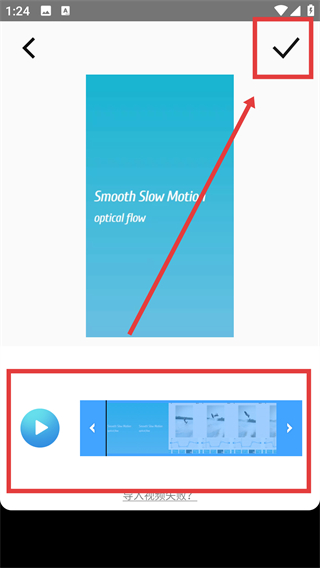 2、进入调速页面后导入视频,点击右上角的确认按钮,就能进入画布尺寸选择界面,准备调整视频比例哦。